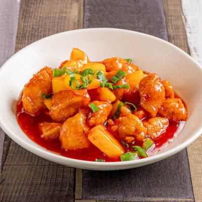 Tofu pieces with a rich Kung Pao sauce, ginger &...